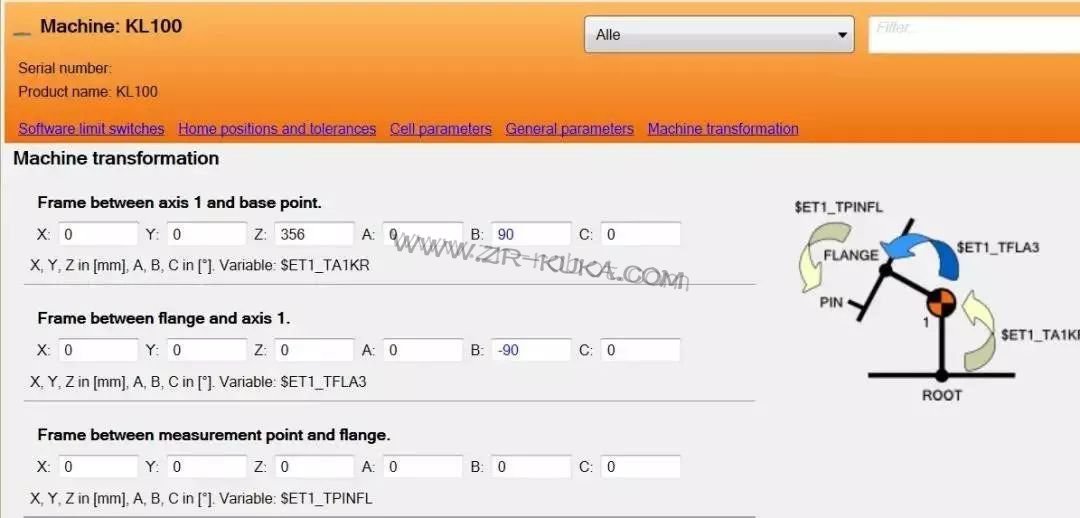 理想情況下,機器人的 ROBROOT 坐標系應與線性單元的 FLANGE 坐標系相同。 實際上,通常會出現安裝誤差,導致這兩個坐標系會存在輕微的差異,這意味著使用外部軸運動坐標系時 TCP 的位置會出現偏差。 如果在機器人控制器里安裝了 KSS 8.3,則可以通過線性單元的 Offset 校準,來對這些差異進行示教校正。