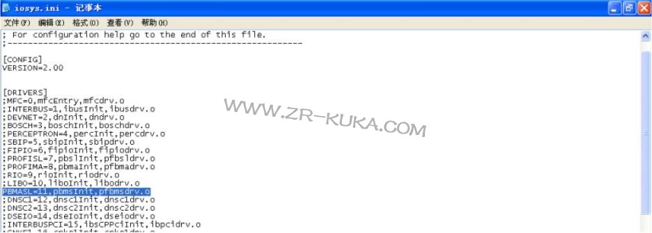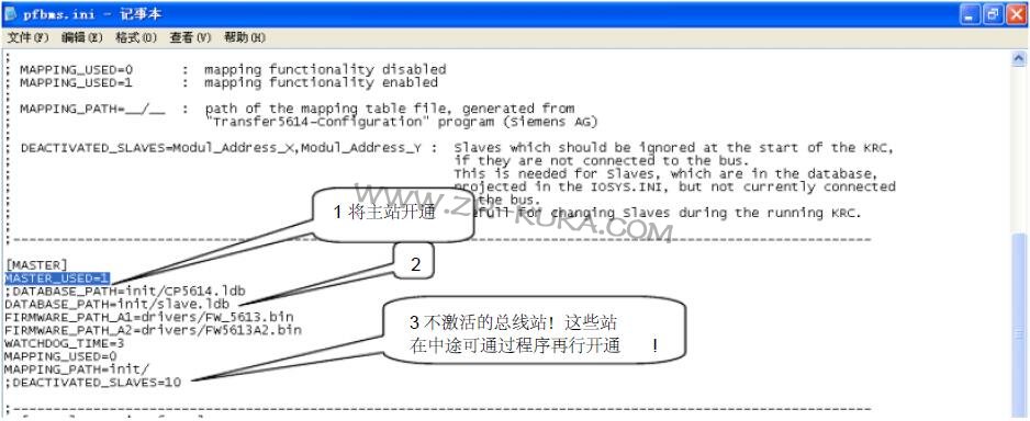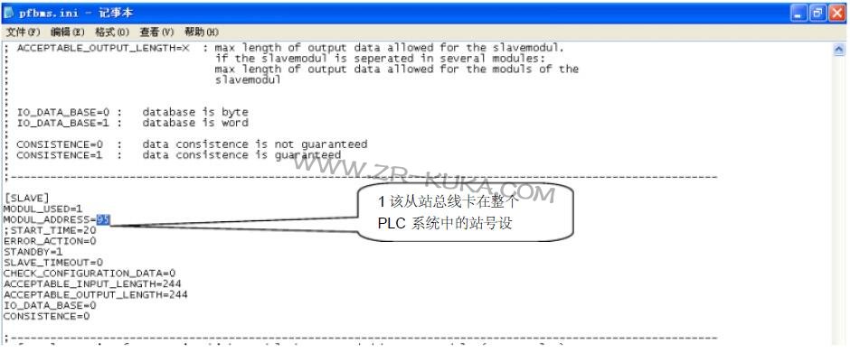 二、將C\KRC\Roboter\Init 文件夾內的pfbms.ini 文件打開,并設置相應參數。