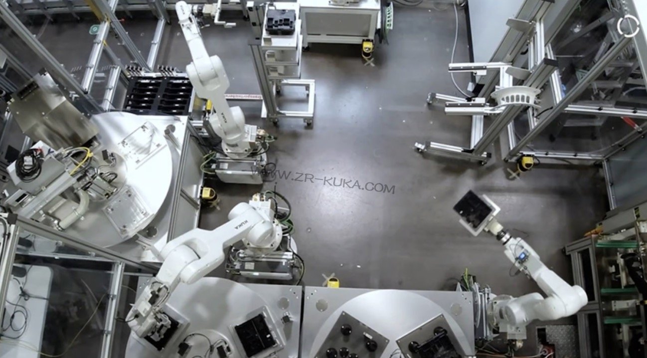 Schnaithmann 團隊決定引進7臺 KR AGILUS 機器人在該系統(tǒng)中進行協(xié)作。其中5臺機器人負責放入或取出裝有組件的暫存盒,另外2臺機器人則利用可視系統(tǒng)執(zhí)行實際的生產線終端測試。KR AGILUS 具有多項特性,包括修長的外型設計、多元化的用途、高精度以及 IP67 防護等級和 ISO 4 潔凈室等級。