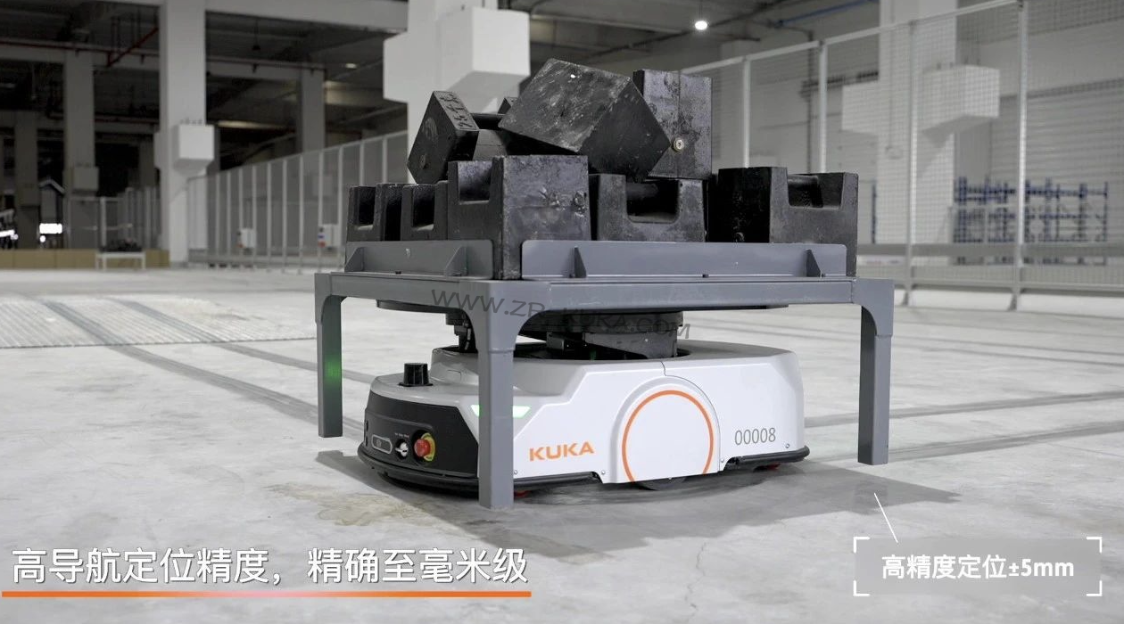 KMP 400P負載情況下最大運行速度1.5m/s,作業效率更高。定位精度±5mm/±0.5° ,定位更精準。