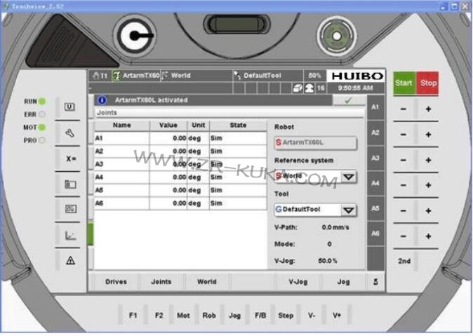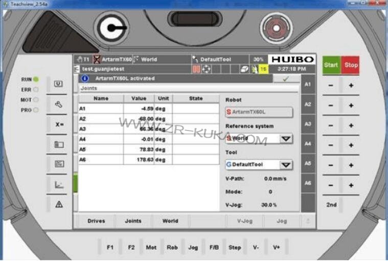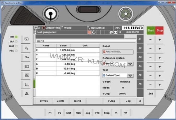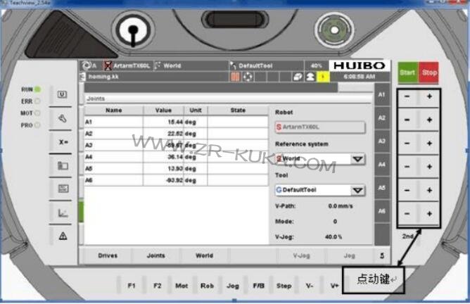 用戶選擇好坐標系,設定好運行速度后,按點動鍵即可對機器人進行手動操作了。