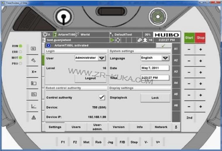 首先,登陸用戶,獲取控制權限,如圖4.1 是Administrator 用戶。注意觀察界面上方的狀態顯示欄。觀察狀態顯示欄是否為手動狀態。還要注意是否有伺服報警狀態,及速度檔次。