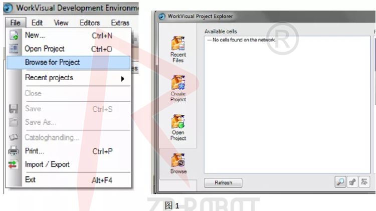 2)電腦上打開WorkVisual,點擊File->Browseforproject,在彈出的畫面里單擊refresh,