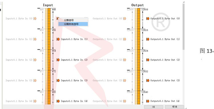 b.將BYTE分割成BIT類型,在右下角找到并點擊信號編輯圖標,如圖12紅色區域,然后進入圖13,選擇分隔所有信號后,點擊OK鍵;